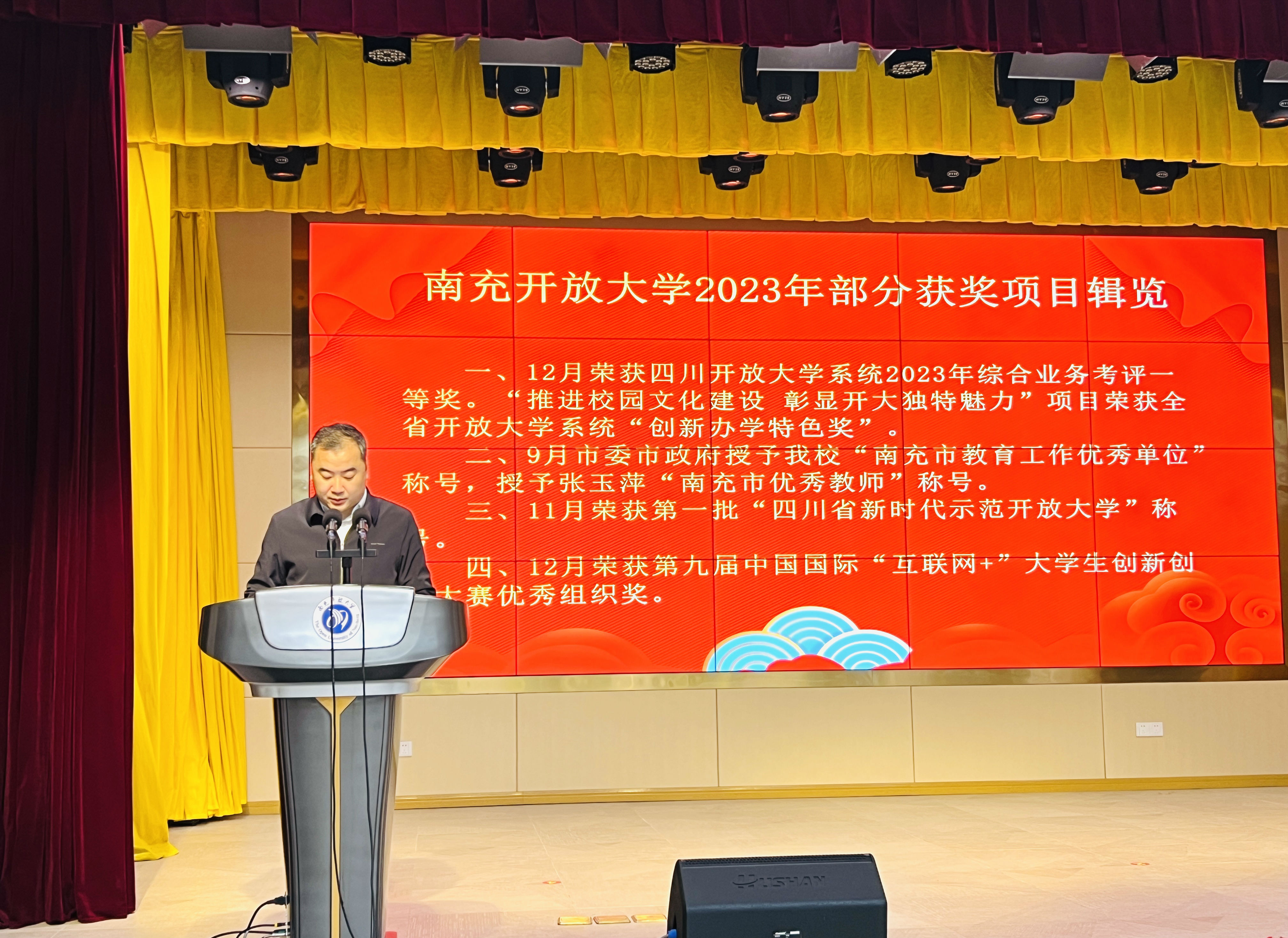 副校长曲阳宣读南充开放大学2023年部分获奖项目