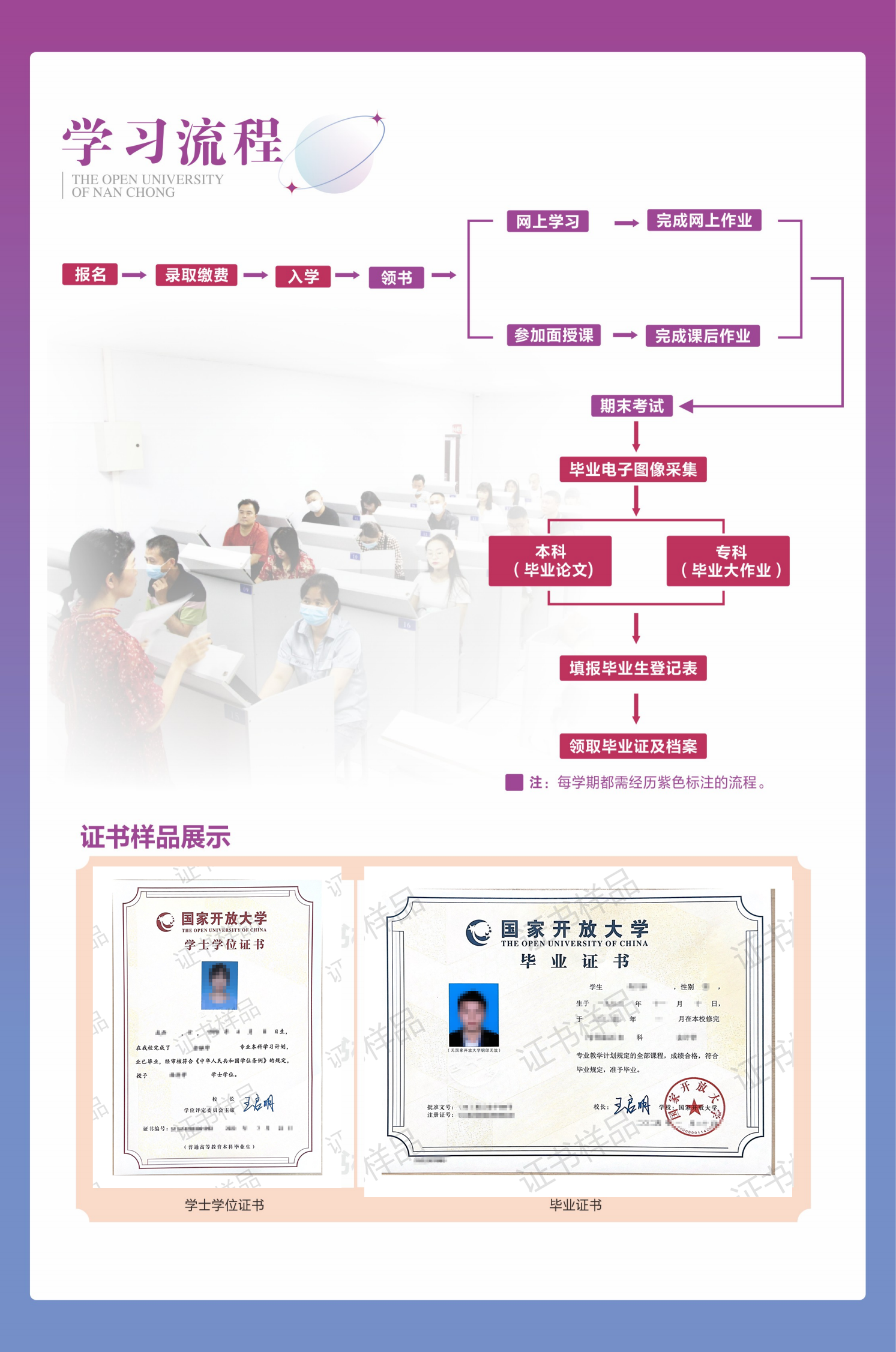 根据教育部有关要求,专科起点本科专业、专科专业最低修业年限均为两年半。学生在八年学籍有效期内通过学习修满教学计划规定的毕业总学分,实践性教学环节考核合格,思想品德经鉴定符合要求,即准予毕业并颁发国家承认的国家开放大学毕业证书。