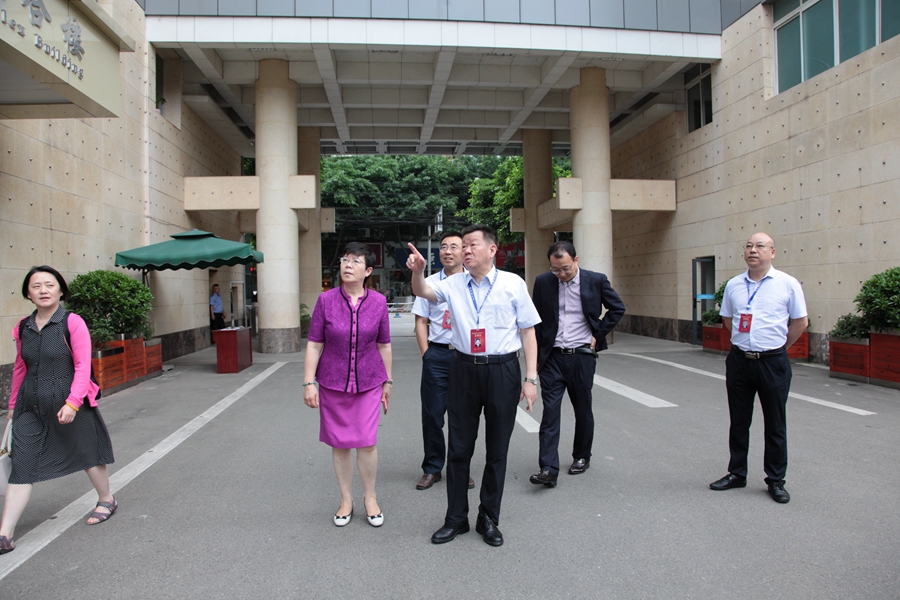 四川电大副校长吴兆华博士(左二)在南充电大党委书记、校长昝平(左三)及南充电大班子成员陪同下,考察南充电大教学设施。