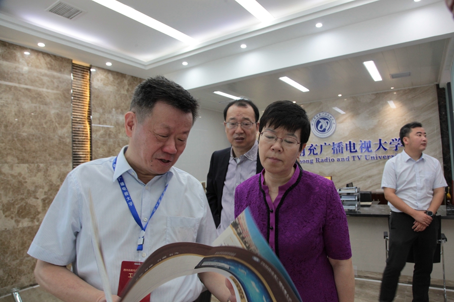 考察过程中,每每看到南充电大为了方便学生学习和考试而精心添置的设施设备,以及南充电大推动教育教学质量提升而印发的《教学简报》、《手机APP使用手册》、《新生学习指南》等资料时,吴兆华就拿出手机拍照,她边拍边笑着说,我拍下来一是留作资料,二是向你们学习,同时整理一下发朋友圈,宣传南充电大“为了一切学习者,一切为了学习者”的办学和服务理念。