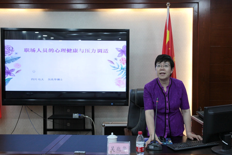 下午,吴兆华博士以《职场人员的心理健康与压力调适》为题,不时结合上午考察调研内容,为南充电大全体教职工作了精彩讲座,讲座内容通过视频、图片、文字等多种媒体呈现,讲座过程轻松愉快,笑声阵阵,掌声不断,老师们纷纷表示,听了吴博士的讲座,压力顿消,整个人都清爽了许多。