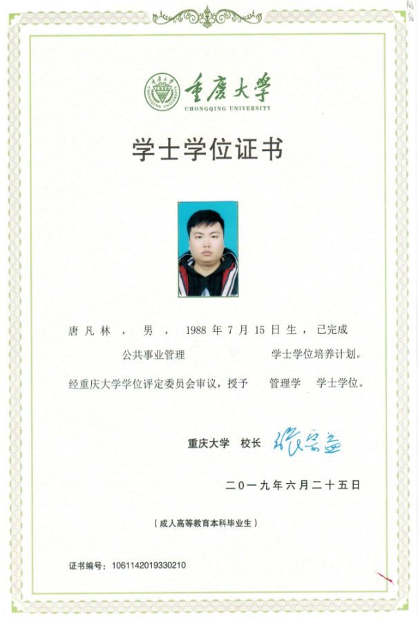 罗灵玲、唐凡林两位同学,是重庆大学网络教育学院南充电大学习中心的学生,他们在校期间,充分利用现代远程教育给每位学习者带来的学习便捷,珍惜这难得的学习机会,刻苦努力,自律自强,他们在所有课程考试中,课程平均成绩分别取得了87.5和92.8的高分,他们撰写的毕业论文获得了优良的成绩,并通过了重庆大学网络教育学院组织的答辩。他们在学好专业课的同时,充分利用空余时间,努力学习英语,在极短的时间内,就通过了重庆市组织的学位英语考试。经重庆大学学位评定委员会审议,分别授予他们工学、管理学学士学位。