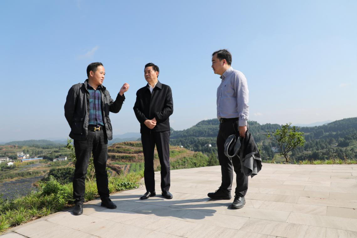 当天上午,罗旭一行在大王镇党委书记孙国雄、羊角山村驻村工作队队长暨第一书记曲阳等的陪同下,参观了2018年新建的“定升路晚熟柑橘产业带”大王段12000余亩坡地上栽植的30000余株果树苗。