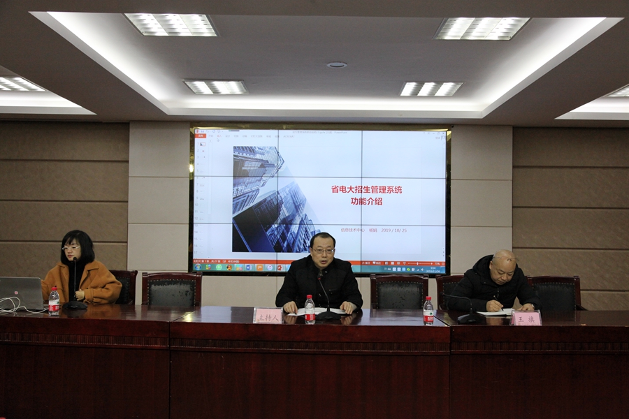 南充电大副校长蒲晓波主持培训会,四川电大研发的国开招生平台及手机报名系统软件的主创人员之一的杨娟老师,详细介绍了这款软件的使用方法和流程。