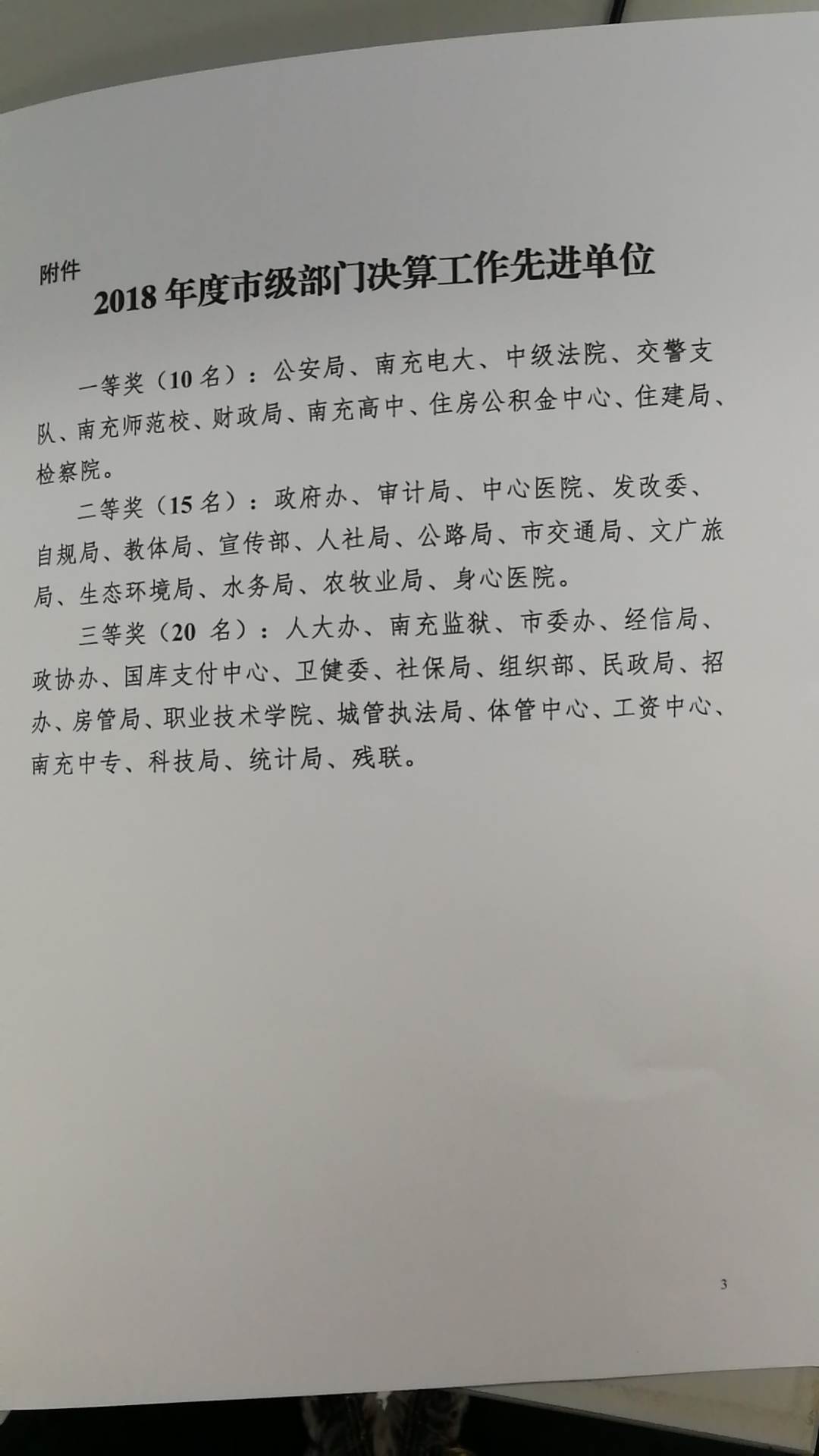 根据《南充市财政局关于2018年度市级部门决算工作考核情况的通报》(《南财库<2019年>17号》)文件的通知,南充市财政局对南充市部门决算工作进行了综合考核,并对45个单位进行了通报表扬,我校喜获一等奖,总排名为第二名,较2017年度上升了2个名次!不仅如此,更值得庆贺的是:我校财务决算工作已连续三年斩获一等奖的殊荣!!!