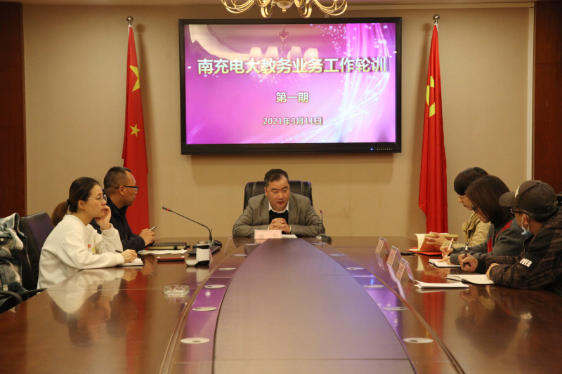 2021年3月11日,南充电大教务处管理业务轮训第一期在远程教学综合楼503会议室召开,教务处全体教师参加了会议,直属部部分教师也列席了培训。会议由南充电大教务处处长游华奎主持,分管副校长曲阳到会指导并全程参加了培训。