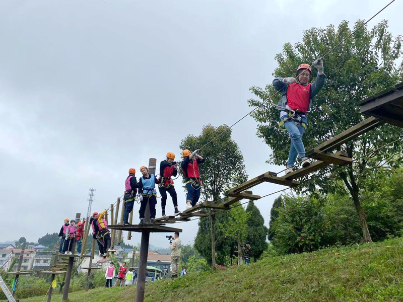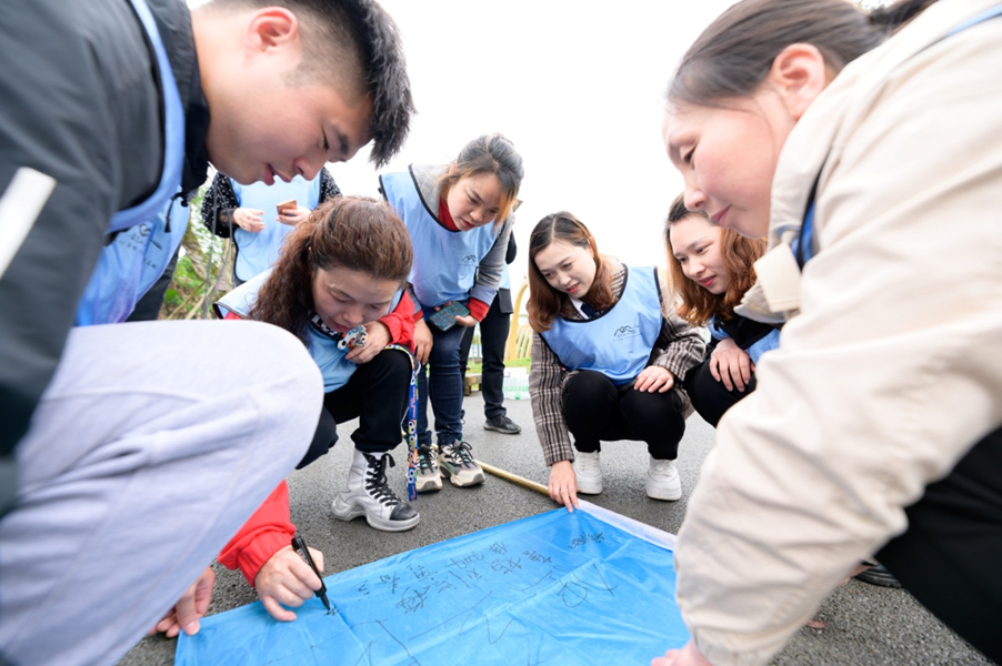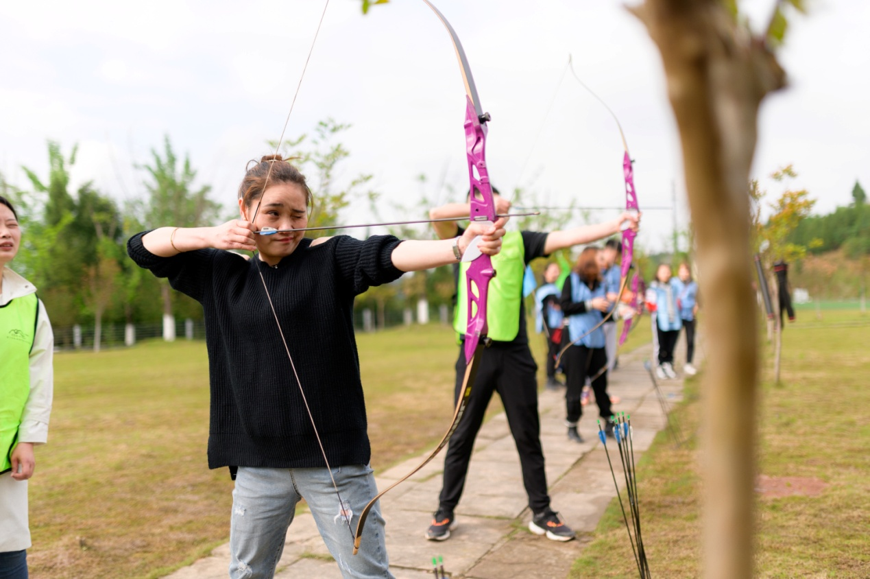 首先以“庆祝建党百年,传承红色文化”为主题开展了团队文化建设。师生们组建了“红星闪闪”、“中国龙”、“独立团”、“红旗先锋”等四支红色小分队,唱响了《红星照我去战斗》《五星红旗》等革命歌曲,每一名队员都在队旗上签上了自己的名字,庄严承诺:不忘初心、牢记使命,将“时时学、处处学、人人学”的电大终身学习理念践行到实际行动中去。随后,全体师生开展了“丛林穿越”、“弓箭射击”、“真人CS”三项竞技活动。在活动中,大家互帮互助,相互鼓励,穿过重重关卡,成功完成了对自我的超越与挑战,锻炼了意志,增强了自信,提升了团队凝聚力和战斗力。