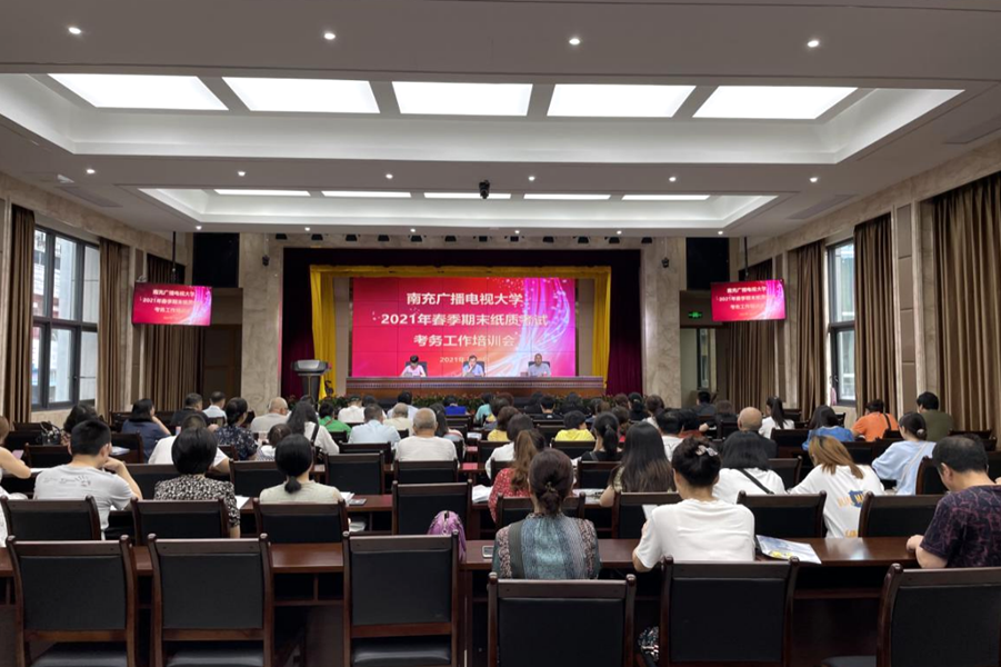 为保证2021年春季期末纸质考试工作的顺利进行,严格规范监考工作程序,2021年7月9日下午,南充开放召开了2021年春季期末纸质考试考务工作培训会。副校长曲阳、教务处处长游华奎、教务处副处长任璘及全体考务、监考人员共计108人参加了会议。会议由教务处副处长任璘主持,副校长曲阳出席并讲话。