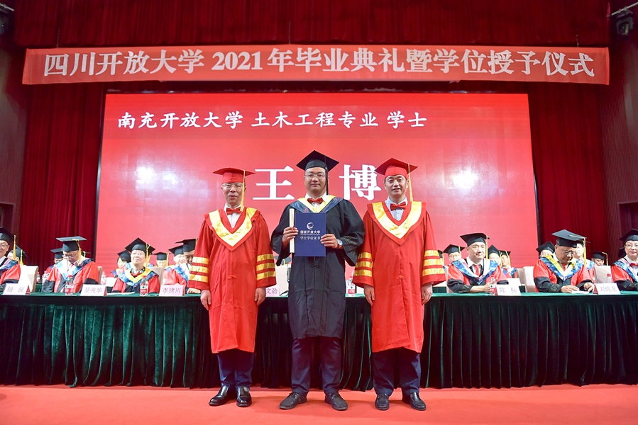 南充开放大学土木工程专业学士王博接受拨穗礼获颁学位