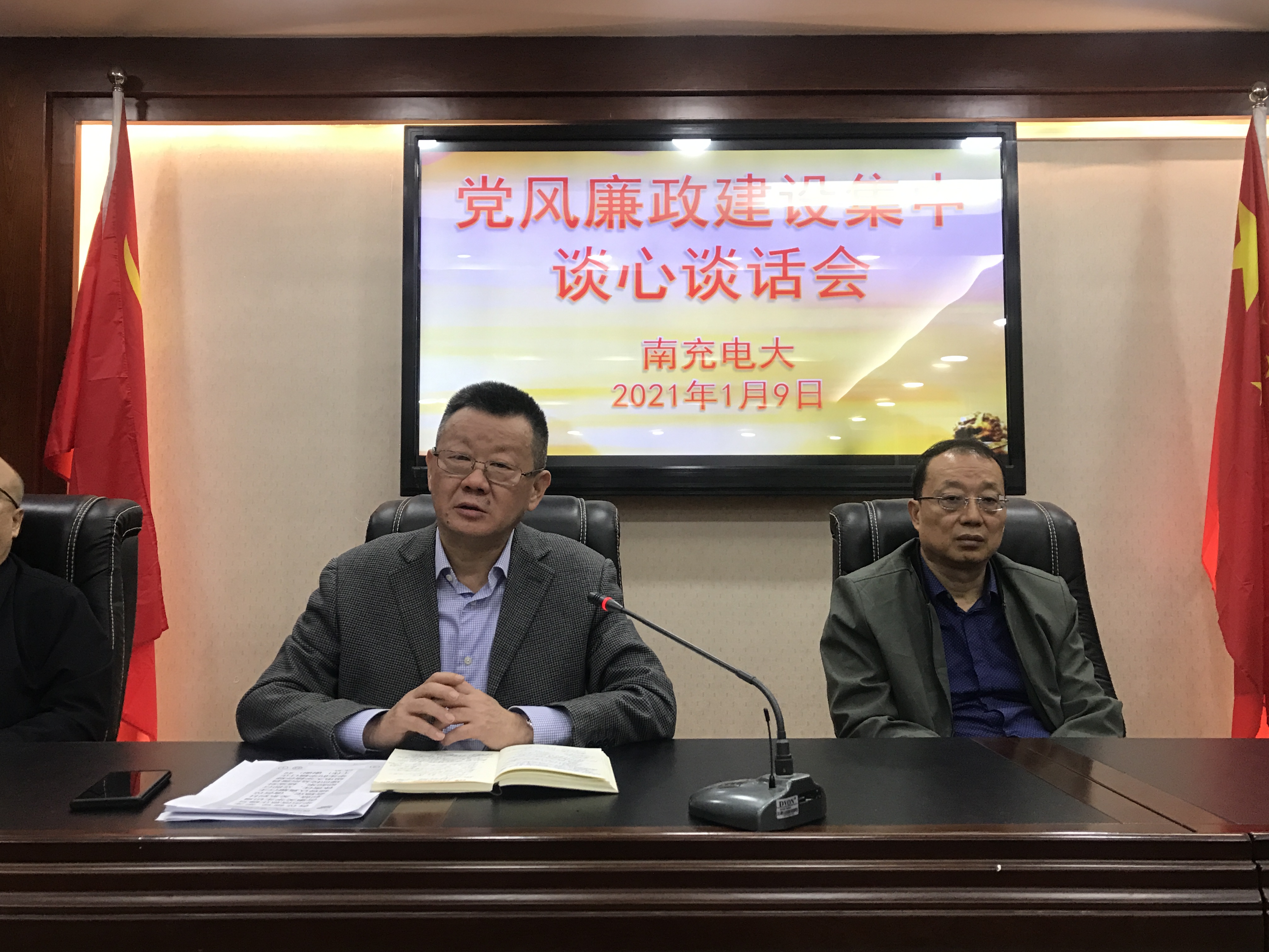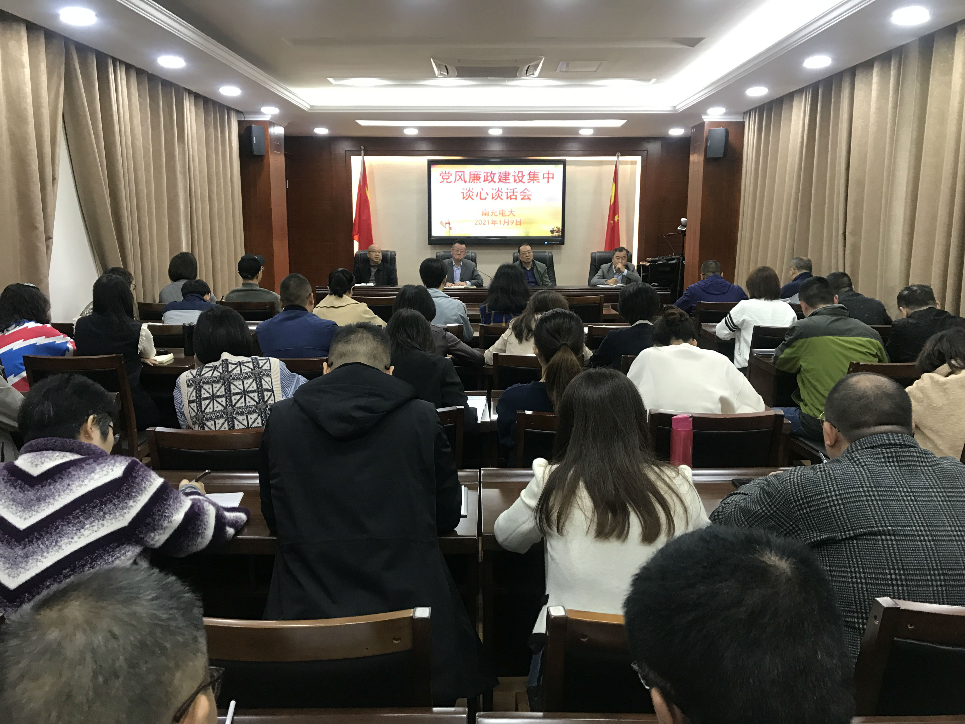 2021年1月9日,我校召开了党风廉政建设集中谈心谈话会,会议由校党委书记昝平主持,校领导、全体中层干部参加会议。