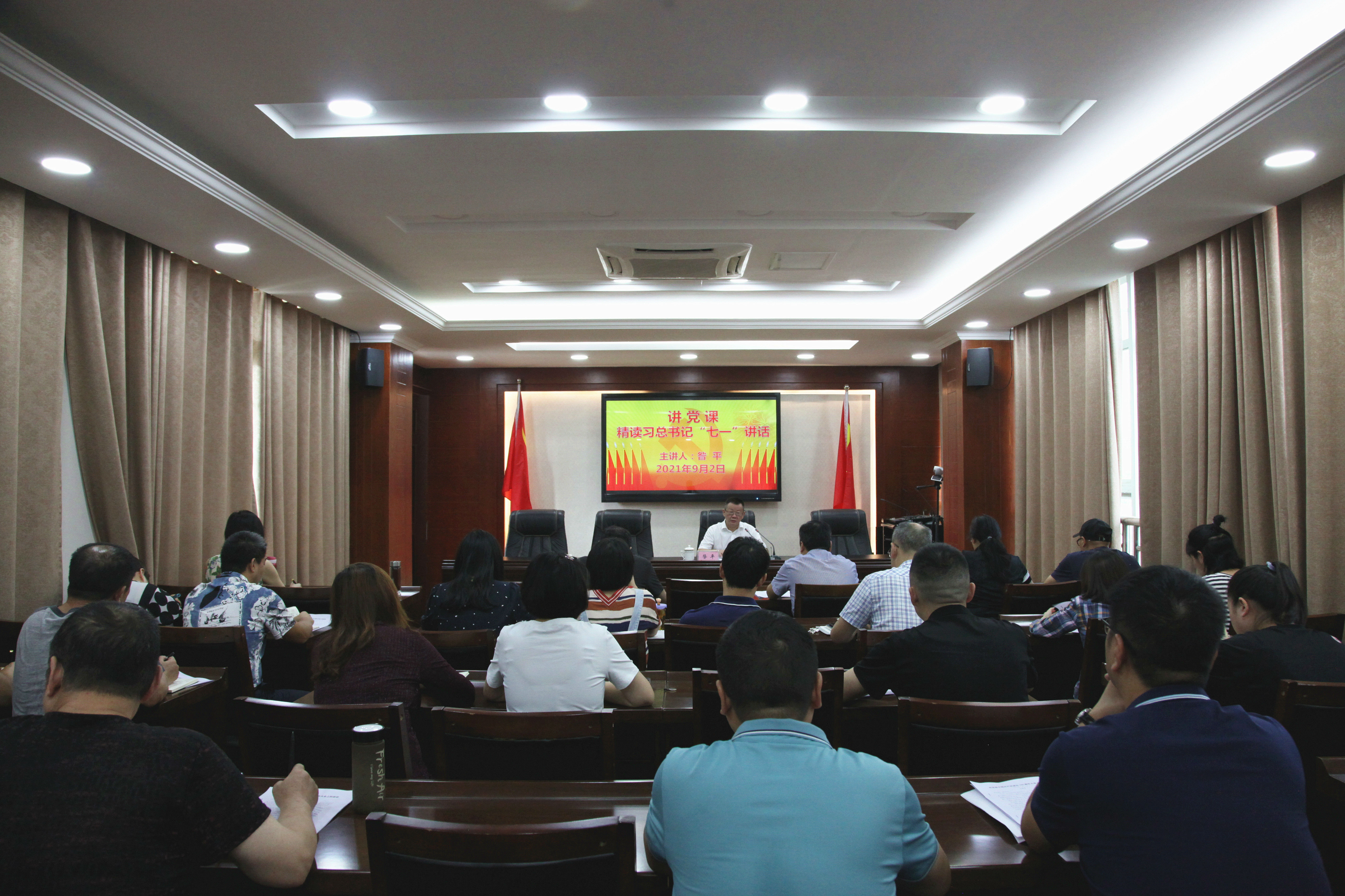 为认真学习贯彻习近平总书记在庆祝中国共产党成立100周年大会上的重要讲话精神,扎实有效开展好我校党史学习教育各项工作,9月2日下午,校党委书记昝平以“精读习总书记七一重要讲话”为题,为党员干部上“七一”专题党课。