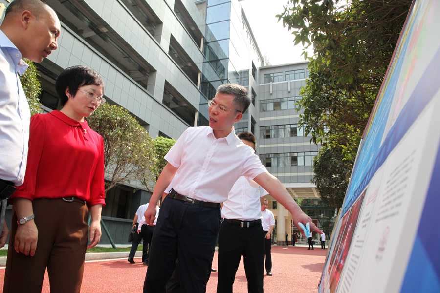 仪式结束后,谭文劲书记与欧阳副市长同与会人员一起参观了校园,观看了学校成果展。