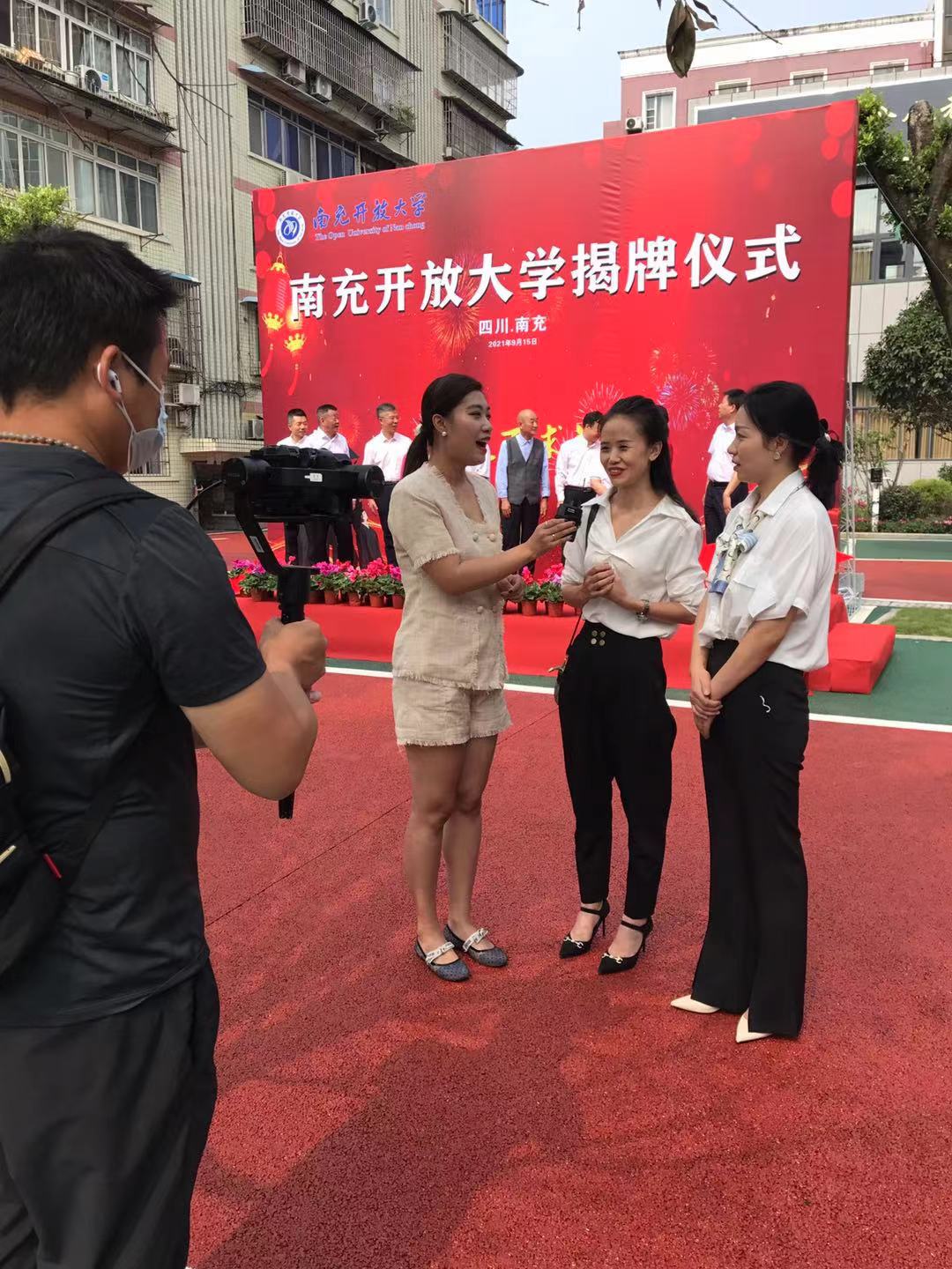 2021年9月15日上午10时,南充开放大学揭牌仪式隆重举行。四川开放大学党委书记谭文劲,四川开放大学发展和改革处处长卿松;南充市人民政府副市长欧阳梅,南充市人民政府副秘书长许澄;市委教育工委专职副书记胡良华;各县市区教育行政部门的主要领导同志,南充开放大学各分校负责人,分校教职工代表,南充开放大学全体教职工、离退休老同志代表及学员代表等180余人出席。本次揭牌仪式进行在线直播,更多的师生校友和市民通过收看直播共同见证了这一历史性时刻。
