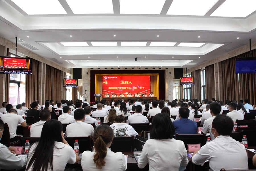 9月28日下午,南充开放大学举行了2021级秋季“农村带头人学历提升”项目开班仪式。市委组织部副部长、市委党建办主任陈卓夫;四川开放大学农林卫生学院、乡村振兴学院院长杨志超;南充开放大学校领导,南充开放大学各处、室、部负责人;南充开放大学各县(区)分校负责人、全市“农村带头人学历提升”项目全体新生及班主任等共计180余人出席会议。会议由校党委书记、校长昝平主持。