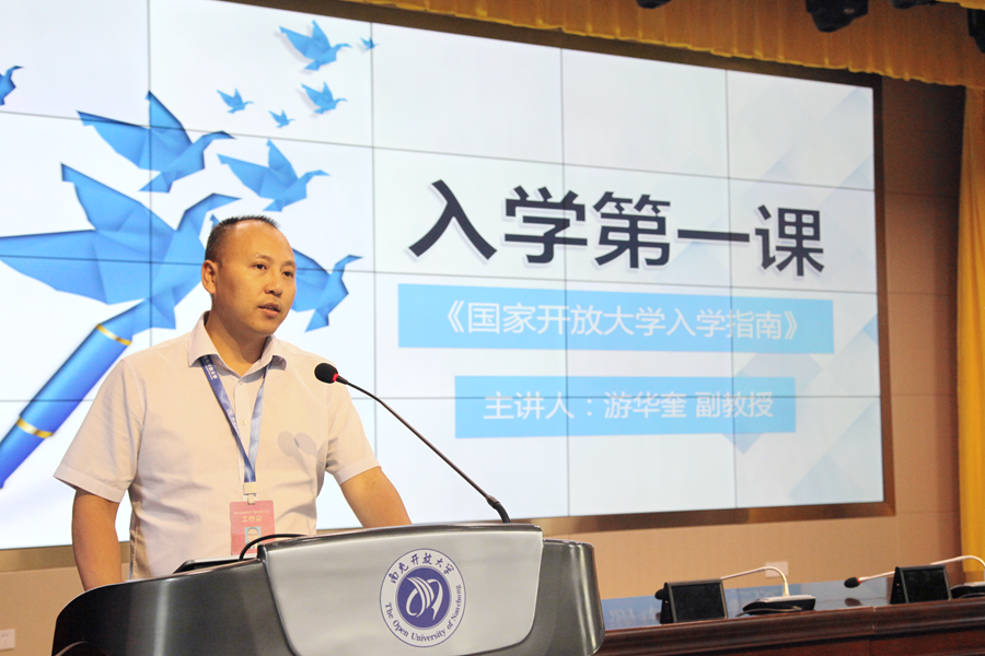 开班仪式上,南充开放大学教务处处长游华奎副教授给同学们讲授了“南充开大开学第一课---新生入学指南”。