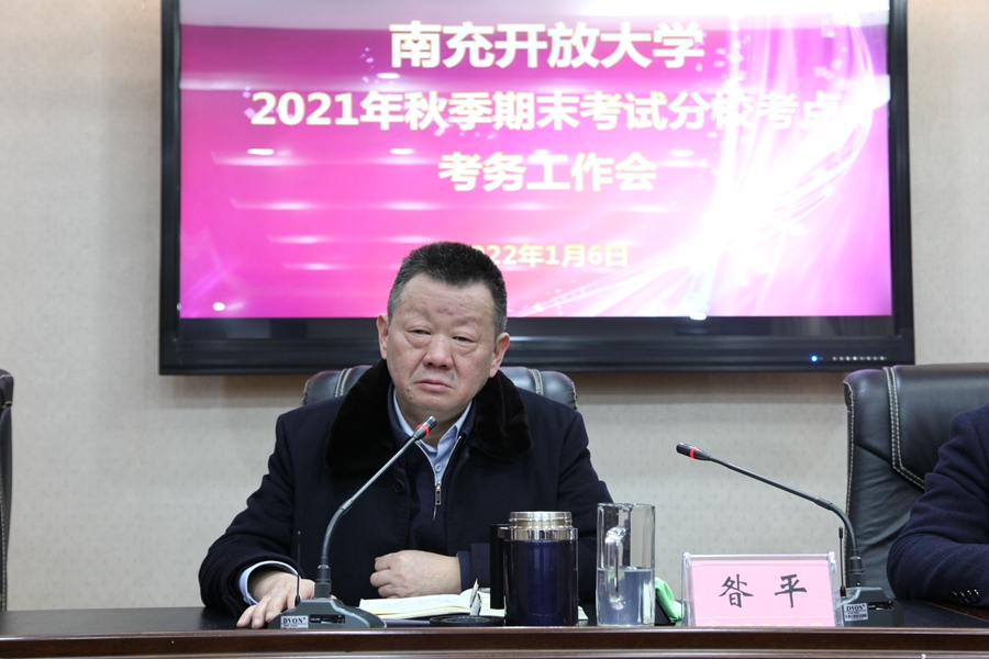 国家开放大学2021秋季期末考试将于1月8-9日进行,我校7个分校(学习中心)均设有考点,为保证2021年秋季分校考点期末考试工作的顺利进行,严格规范监考工作程序,2021年1月6日上午,南充开放大学召开了2021年秋季期末考试分校考点考务工作培训会。校党委书记、校长昝平、副校长曲阳、教务处处长游华奎、教务处副处长任璘、各分校主要领导及相关考务人员共计20余人参加了会议。会议由教务处处长游华奎主持。