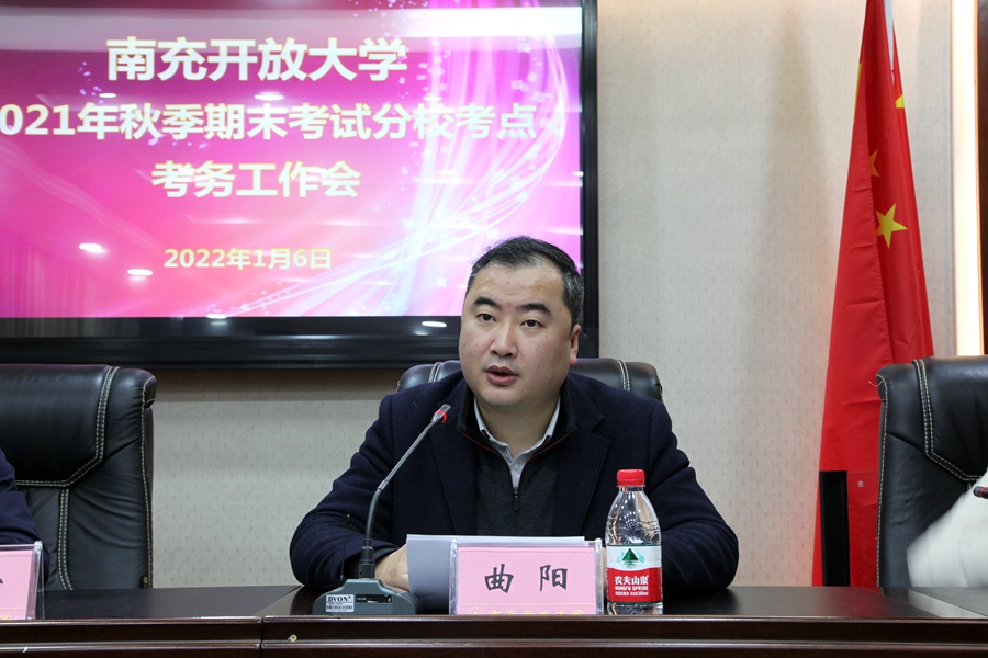 曲阳传达了国家开放大学、四川开放大学考务会精神,并就考生须知、考试设置、警戒线、监控系统等重要环节进行了强调。