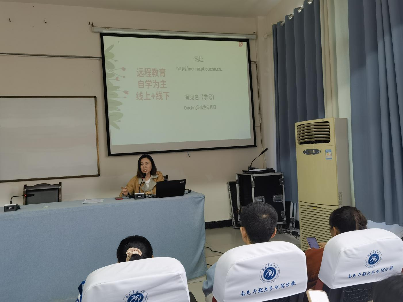 教务处肖霞老师为新生们上了开学第一课,详细介绍了开放大学的学习方式、课程设置、考核要求等内容,帮助同学们尽快适应新的学习环境。