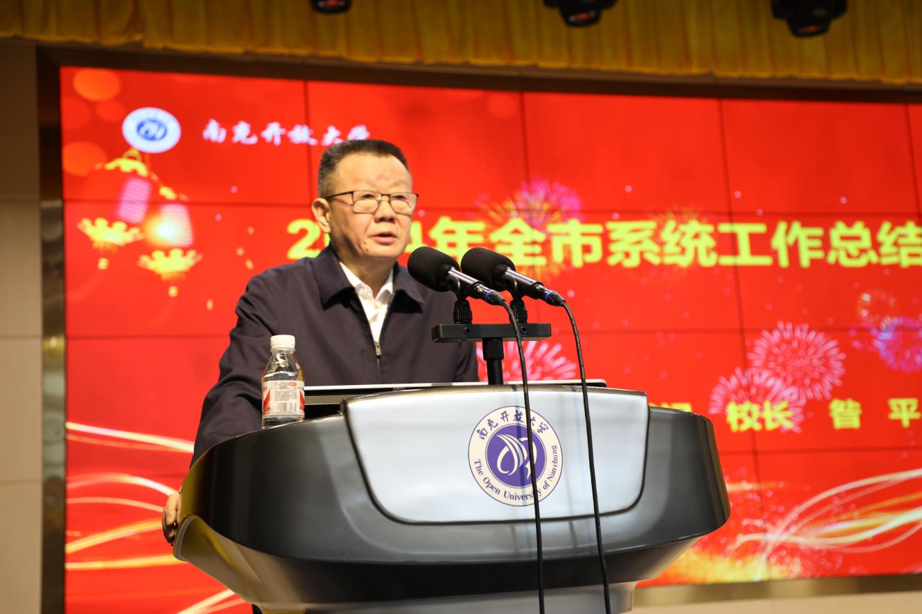 党委书记、校长昝平对我校2024年全市系统工作进行总结,指出,经过全市开放大学系统教职工的不懈努力,2024年我校各项工作取得了优异成绩,荣获2024年度全省市(州)开放大学、行业分校年度业务工作综合奖一等奖和2024年度全省创新办学特色奖;荣获2023年度国家开放大学招生工作先进集体。蓬安分校和阆中分校荣获先进县级分校奖;高坪分校荣获县级工作进步奖。