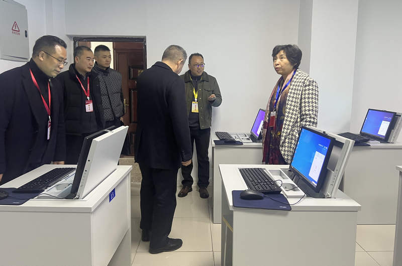 王玲书记首先参观了我校智慧教学-多功能计算机教室项目建设情况,该项目国家开放大学和四川开放大学共计援助建设资金200万。计算机教室内整洁的防静电地板,可自动升降的电脑桌给她留下了深刻的印象,充分肯定了项目的建设进展和我校在考场智能化建设所做出的积极努力与成果。