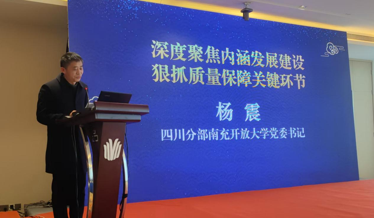 我校作为四川分部基层办学单位代表参加活动,党委书记杨震以《深度聚焦内涵发展建设 落实质量保障关键环节》为题进行交流发言。他主要介绍了学校在强化思政课教学环节、督导线上教学过程、做好面授直播教学、开展实践环节教学等方面的探索和实践。
