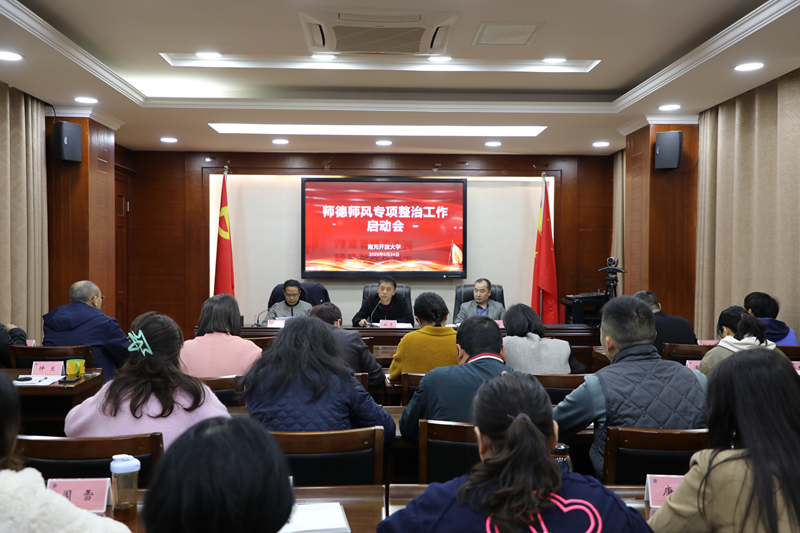 师德建设是教师队伍建设的第一要务,师德师风是评价教师队伍的第一标准。为贯彻落实市教体局相关会议工作安排,进一步巩固师德师风专项整治成效,3月24日,南充开放大学在远程教育综合楼4楼会议室召开2025年师德师风专项整治工作启动会。党委书记杨震主持会议并讲话,全体教职工参加。