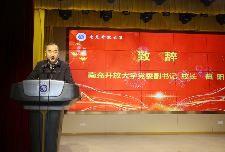 曲阳代表学校向各位新同学的到来表示了欢迎和祝贺,祝愿各位同学在南充开放大学开启一段全新的学习旅程。同时,对新同学提出了四点要求。一要珍惜学习机会,不忘报读开放大学的初心;二要端正学习态度,做自主学习的主人;三要掌握学习方法,熟悉网上学习与作业的具体要求;四要处理好工学矛盾,加强与班主任沟通联系。他殷切希望所有同学与开大携手共进,共同书写属于自己的精彩篇章,在开放大学的舞台上绽放自己的光彩。