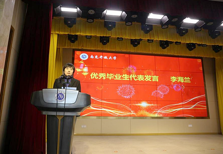 本次典礼还特别邀请了优秀毕业生代表李海兰回到母校与师弟师妹们面对面交流。李海兰同学分享了她为什么选择开放大学;从获得“学习之星”到拿到学士学位的跨越;感恩母校和曾经的老师及同学;希望学弟学妹们践行校训、心怀家国、不负使命,脚踏实地地迈向人生新起点。