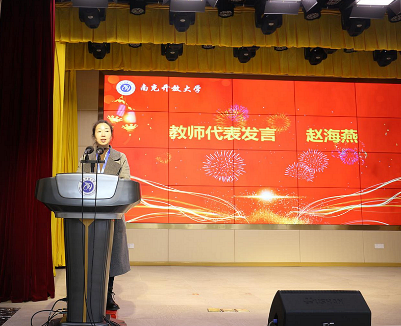 赵海燕老师代表全体教师作了发言,她希望新同学在提升文凭的同时,也能提高自身的学习能力和工作能力。她承诺将秉承“以生为本,德育为先”的理念,全程陪伴大家走完两年半的学习生涯,为所有新生完成学业助一臂之力。