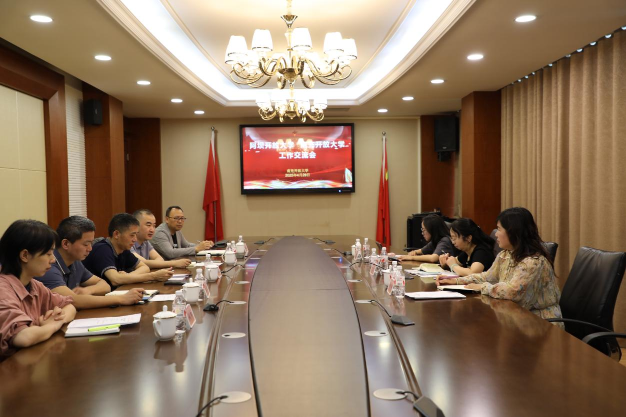 4月29日,阿坝开放大学党委委员、副校长胡静一行来校调研。学校党委书记杨震出席座谈交流会。双方就加强师资队伍建设、开放教育教学科研、教务管理等方面工作展开座谈交流。