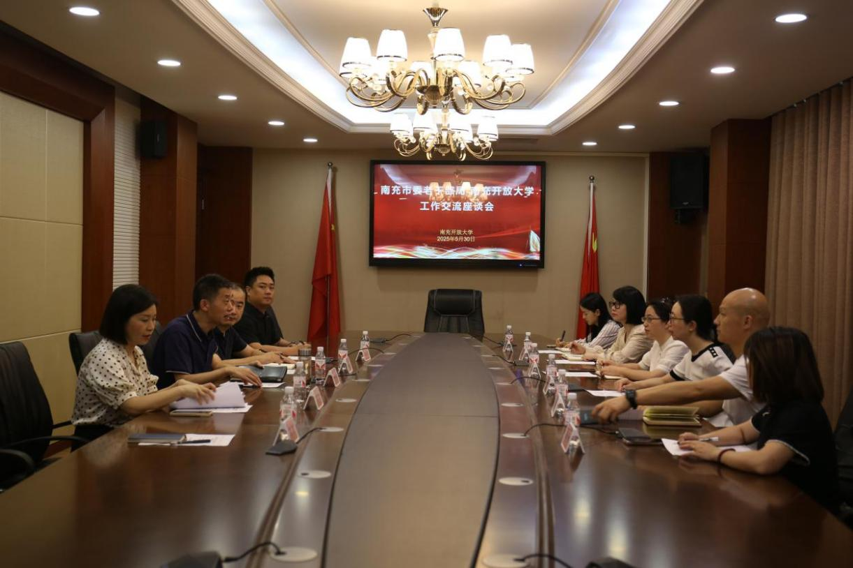 2025年5月30日上午,南充市委组织部副部长、市委老干部局局长覃莉萍一行莅临南充开放大学指导老年教育工作并进行座谈。南充开放大学党委书记杨震、校长曲阳和相关人员陪同参观并参加座谈会。