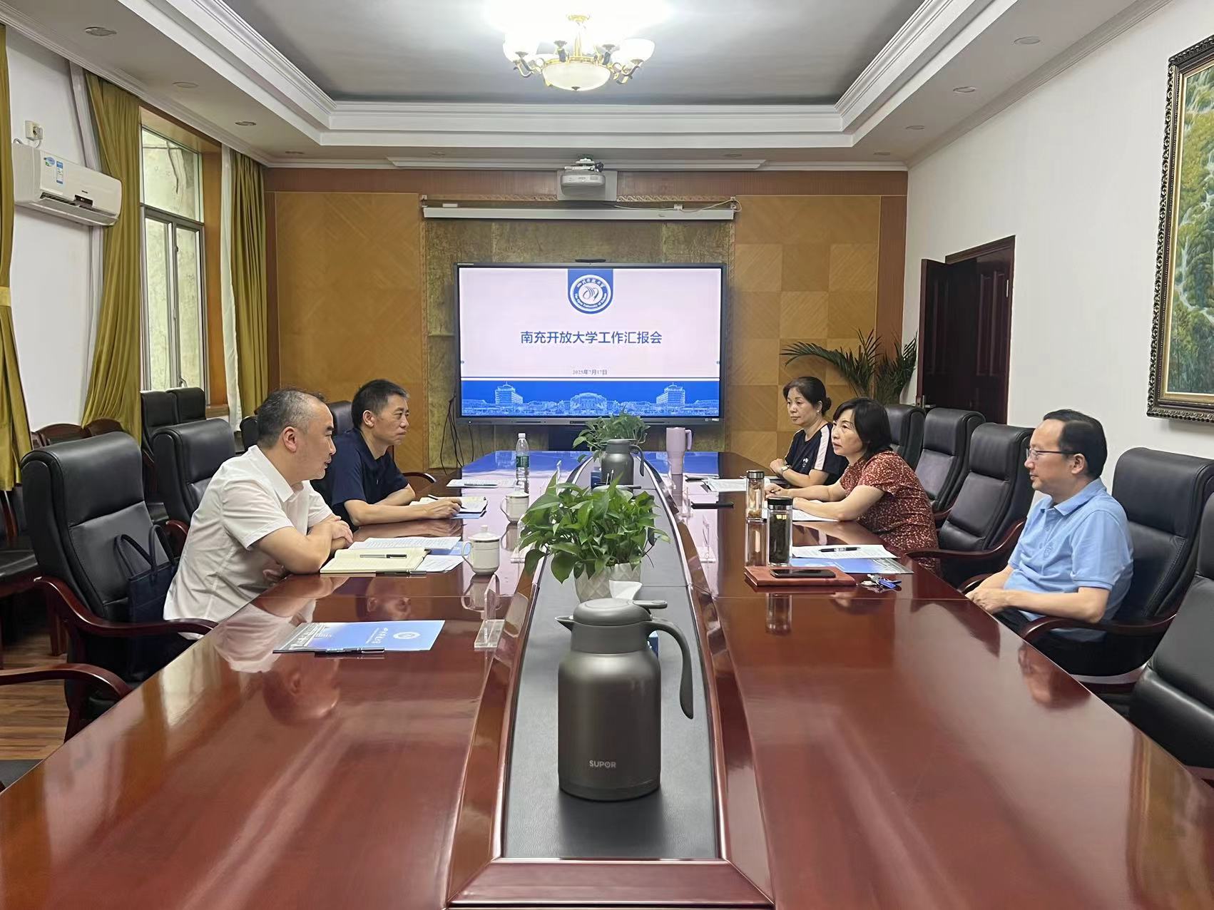 2025年7月17日,南充开放大学党委书记杨震,党委副书记、校长曲阳一行前往四川开放大学,就学校发展情况进行专题汇报。四川开放大学党委书记王玲,党委副书记、校长罗晓东听取了工作汇报。