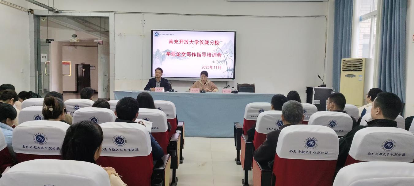 2025年11月7日下午,南充开放大学仪陇分校在307会议室举行2024春季本专科毕业生论文撰写指导培训会。本次培训聚焦毕业生论文撰写规范与实习鉴定册填写要求,旨在帮助学员高效完成毕业关键环节,学校教务处张大川老师主持会议,常务副校长李光琼出席并讲话,2024春季本专科全体毕业生及相关指导教师参会。