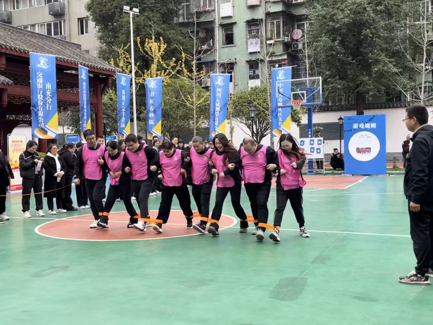 本次运动会是以“推进文旅融合发展,提振区域消费活力”为主题,集运动竞技、消费促进与政策宣传于一体的盛会。我校派出20名教师组成代表队,参与了翻纸牌、绑腿跑等四个项目。教师们在活动中奋勇争先、配合默契,尽展开大风采,在“扔沙包”和“绑腿跑”两个项目均获较好成绩,共计获得1000元“美食尊享卡”。
