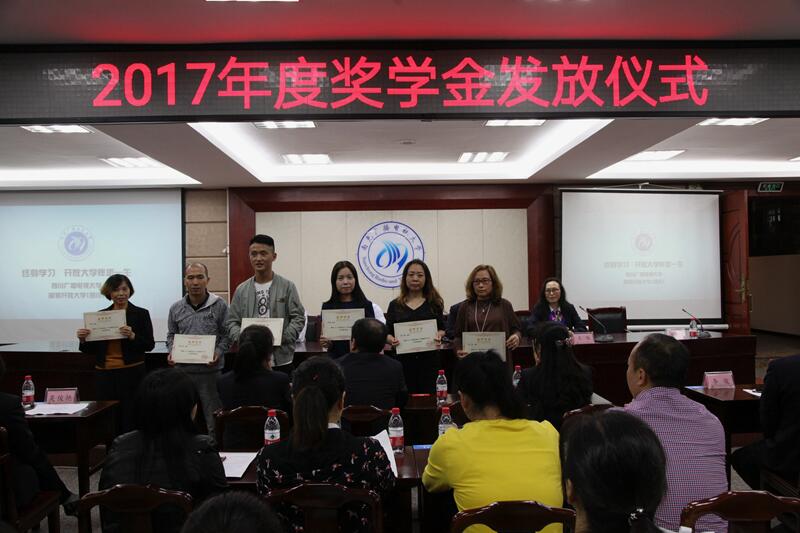 开学典礼上,学校对国开大、省电大奖学金获得者和2018年春季“网上学习之星”进行了表彰奖励,播放了国开大、省电大形象宣传专题片,新生领取了学校印发的《入学指南》。