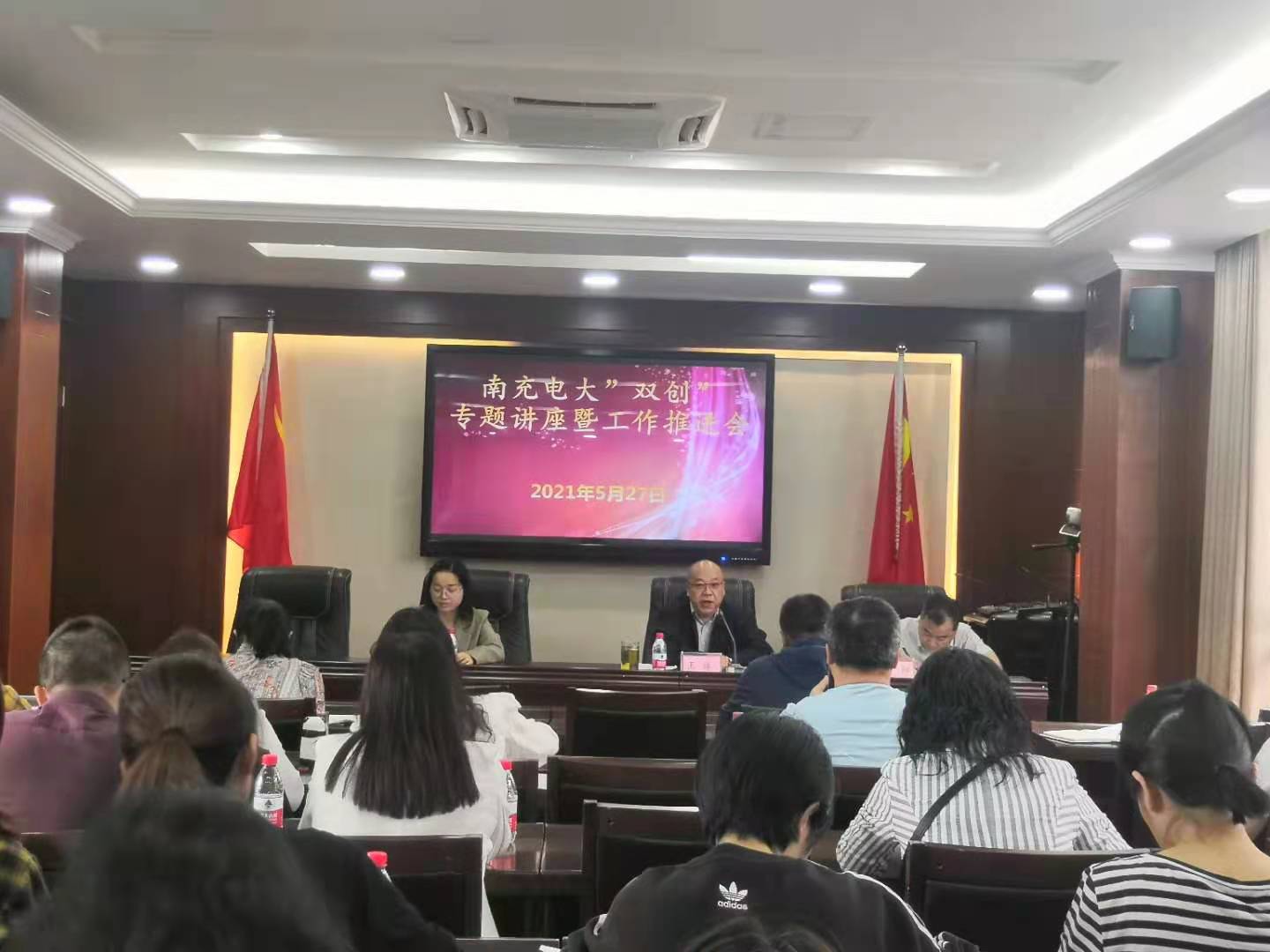 5月27日下午,南充电大在403会议室召开“双创”活动专题讲座暨工作推进会,市电大系统各分校、教学点,校本部招就处、教务处及直属部全体人员参加了会议。受学校党委书记、校长昝平的委托,副校长王旗,党委委员、副校长曲阳出席了会议。