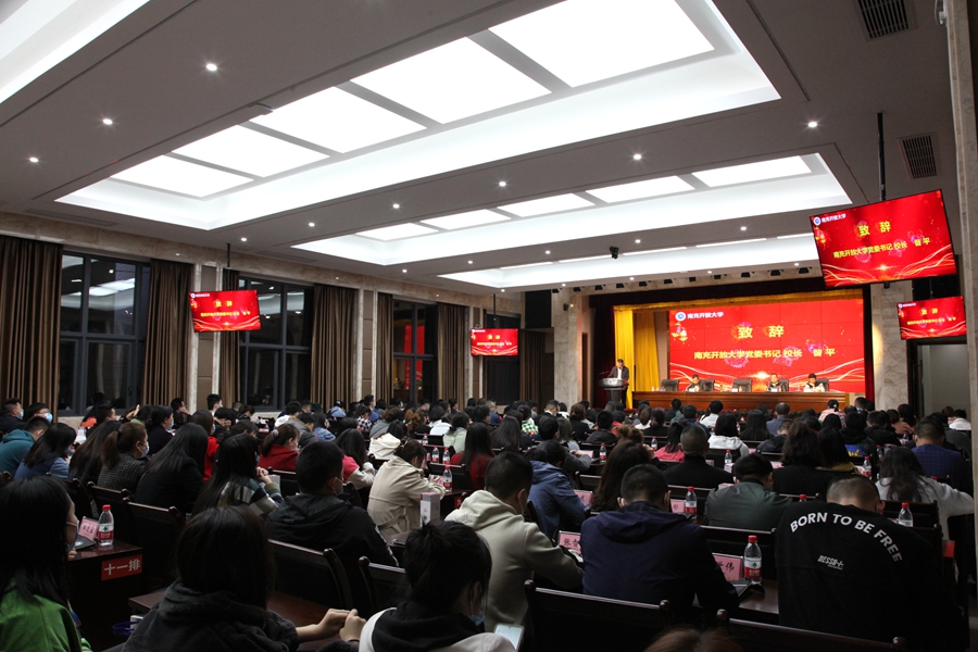 3月30日晚,南充开放大学在多功能会议厅举行了2022年春季新生开学典礼。南充开放大学党委书记、校长昝平出席典礼并致辞。直属部全体教师、部分处室负责人和工作人员,学生代表160人参加了典礼活动。