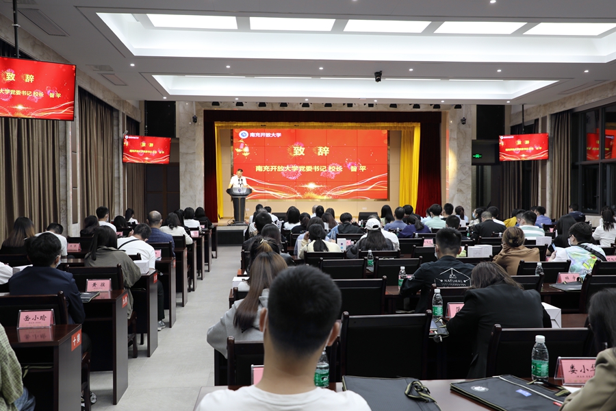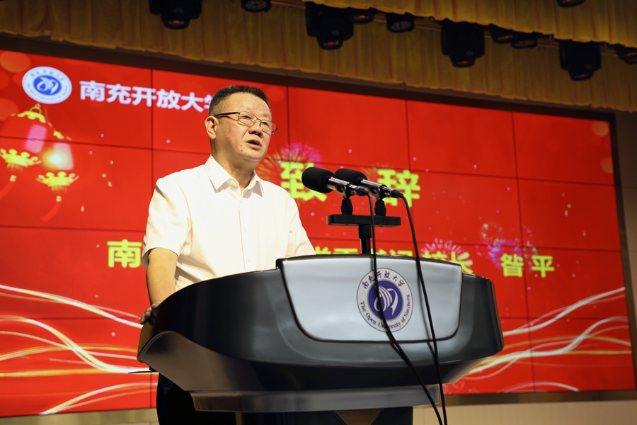 南充开放大学党委书记、校长昝平出席典礼并致辞。