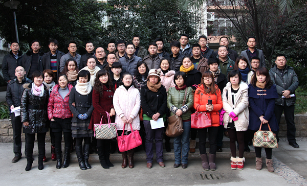 图为南充电大专职班主任郭婧老师与2014年春季班部分学生毕业合影