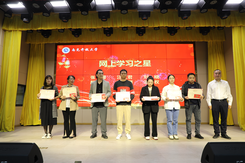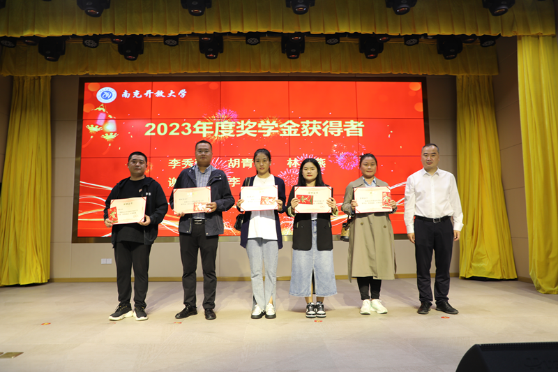 开学典礼上,播放了南充开放大学专题片,为南充开放大学2023年度奖学金获得者代表和2024年春季“网上学习之星”的获奖代表颁发了获奖证书及奖金。南充开放大学教学科研处处长任璘和教务处处长游华奎分别宣读了以上两项表彰文件。