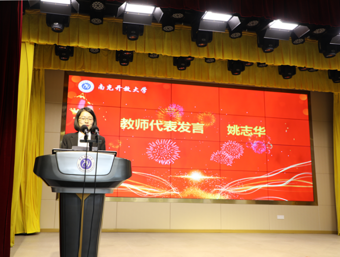 姚志华老师代表全体班主任,对新同学的到来表示热烈的欢迎,她希望新同学在提升文凭的同时,也能提高自身的学习能力和工作能力。她承诺将秉承“以生为本,德育为先”的理念,全程陪伴大家走完两年半的学习生涯,为所有新生完成学业助一臂之力。