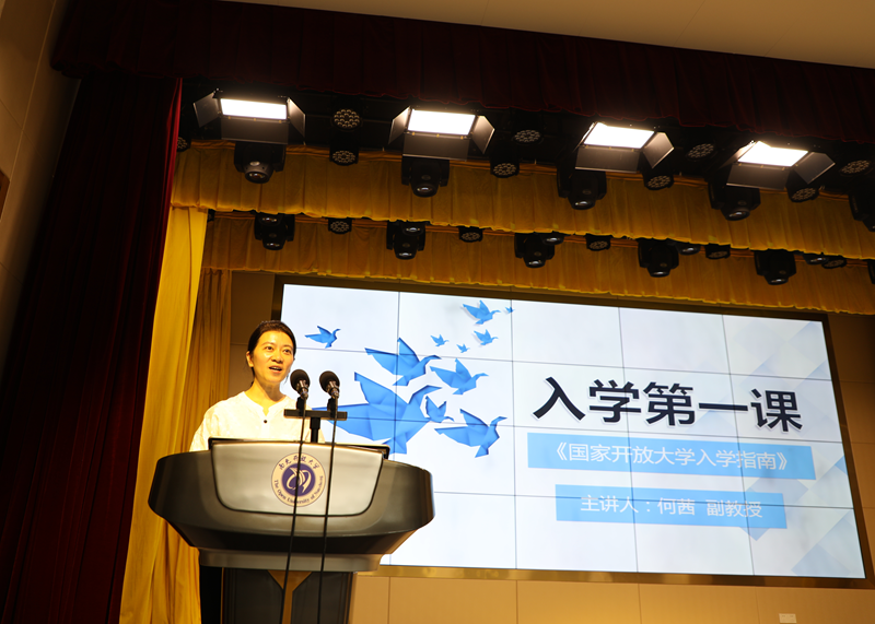 在开学典礼的最后环节,由直属部副主任、副教授何茜给新生代表讲解《国家开放大学学习指南》,对开放教育的学习模式,从线上线下学习、考核方式等多角度为新同学们进行了学习方法的指引,围绕“怎么学”“怎么考”等学生最关心的问题做了详细解说。(文:彭光源 图:周雪 审核:曲阳)
