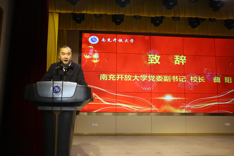 曲阳代表学校向各位新同学的到来表示了欢迎和祝贺,祝愿各位同学在南充开放大学开启一段全新的学习旅程。同时,对新同学提出了四点要求。一要珍惜学习机会,不忘报读开放大学的初心;二要端正学习态度,做自主学习的主人;三要掌握学习方法,熟悉网上学习与作业的具体要求;四要处理好工学矛盾,加强与班主任沟通联系。他殷切希望所有同学与开大携手共进,共同书写属于自己的精彩篇章,在开放大学的舞台上绽放自己的光彩。
