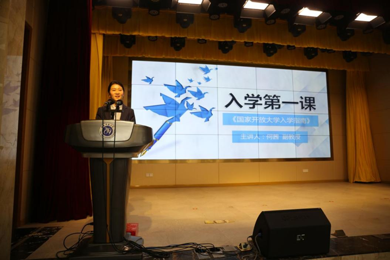 在开学典礼的最后环节,由直属部副主任何茜副教授给新生代表讲解《国家开放大学学习指南》,对开放教育的学习模式,从线上线下学习、考核方式等多角度为新同学们进行了学习方法的指引和讲解。 (文字:彭光源 图片:周雪 审核:曲阳)