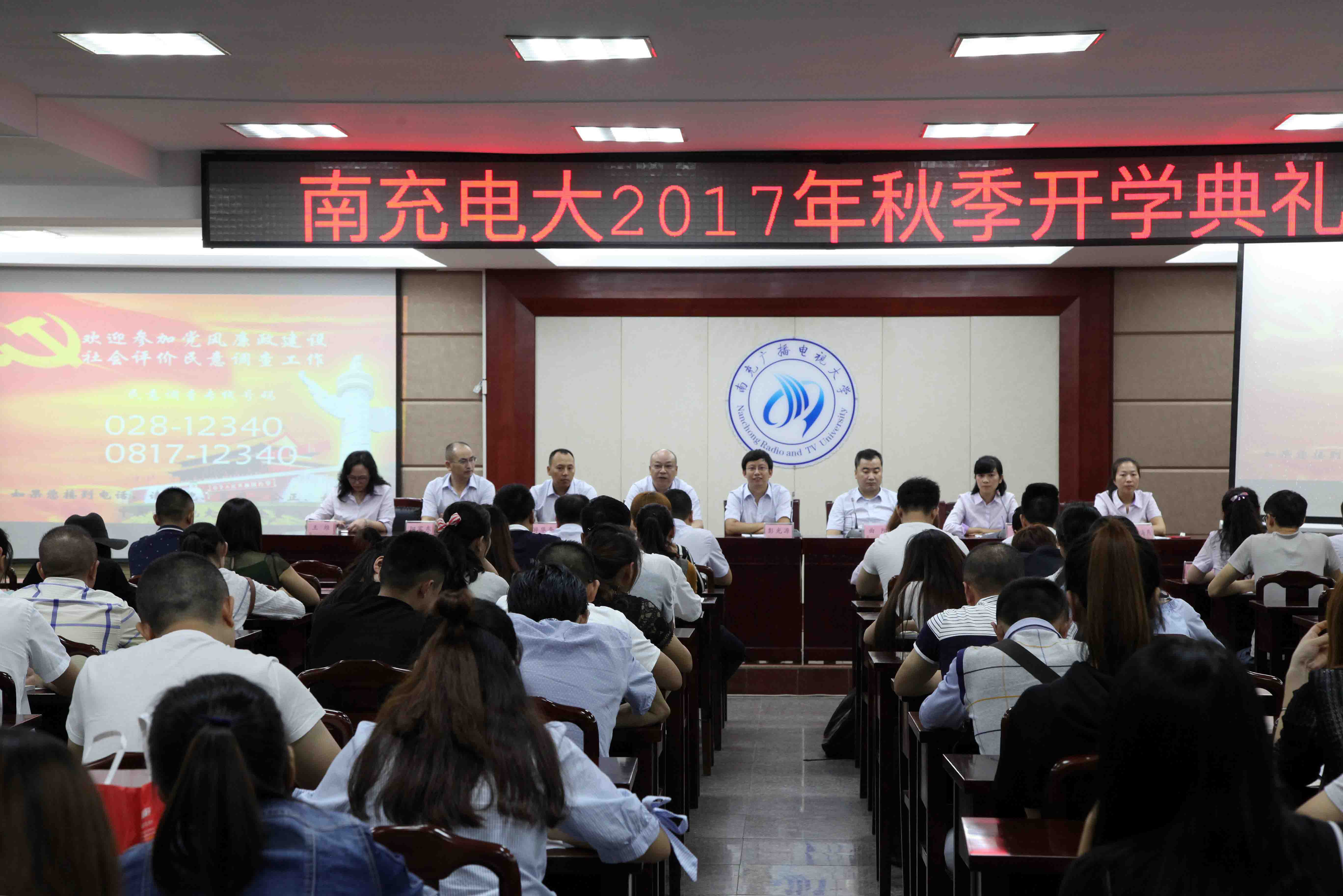 9月22日,南充电大在远程教学楼学术厅举行2017年秋季新生开学典礼。直属部8名专业管理员及近300名新生代表参加了典礼。