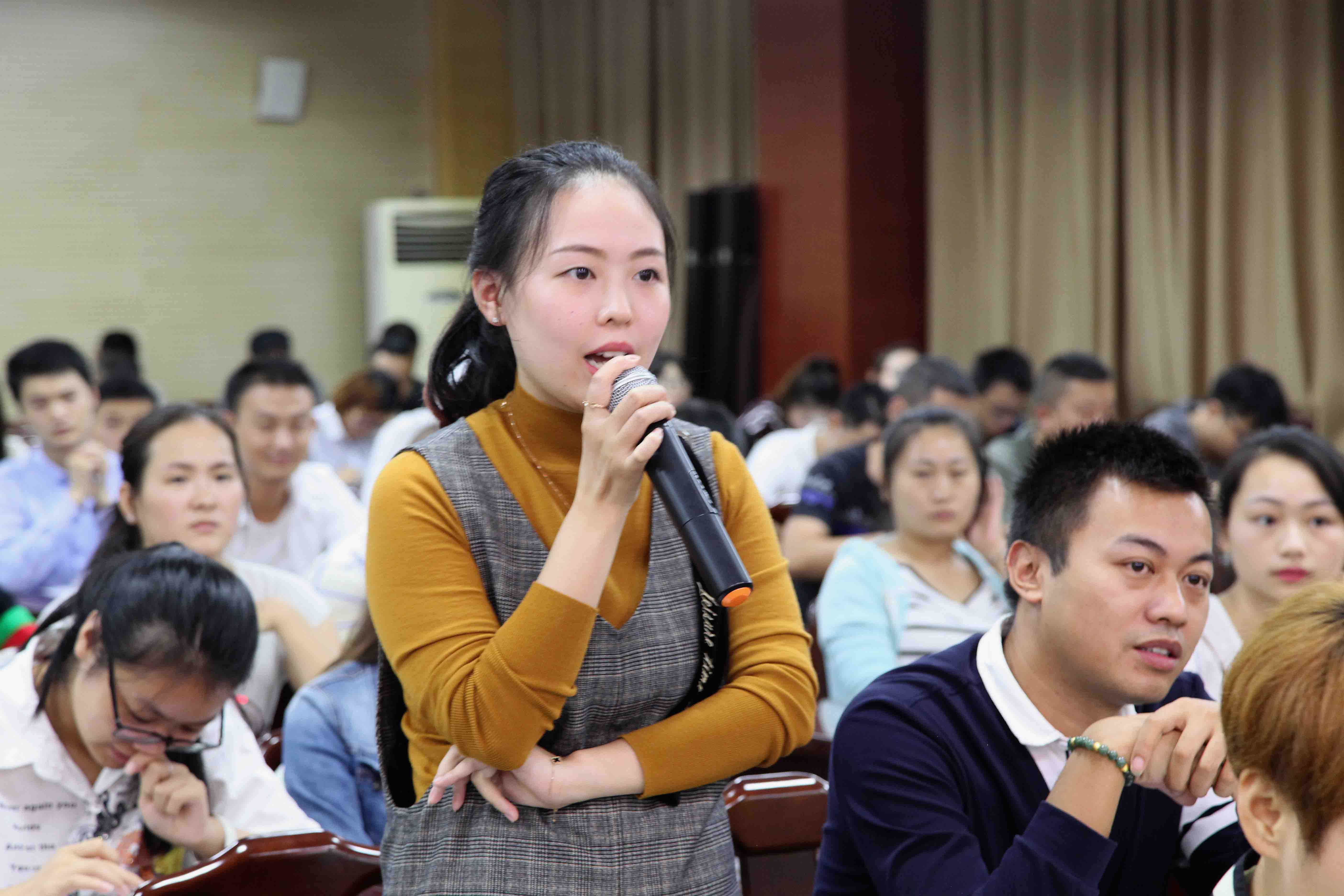 图为南充电大入学新生在开学典礼现场提问。