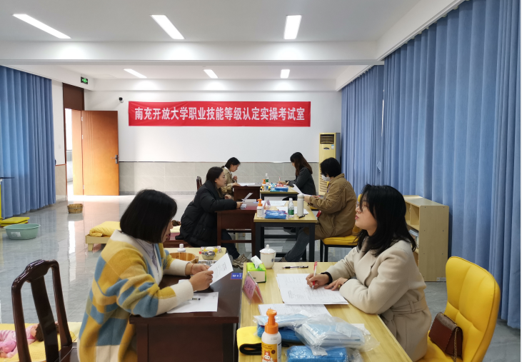 本次考试共有保育师和行政办事员两个工种,来自幼儿园和企事业单位的165名从业人员参加了考试。四川开放大学、南充职业技术学院共6名保育师考评员参加了实操考试的考评工作。