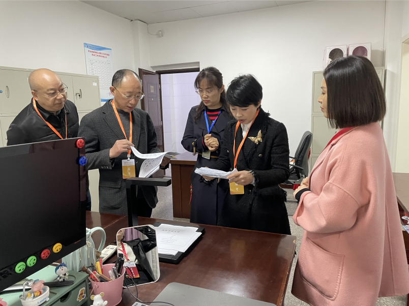 图为市人社局业务主管科(中心)领导查阅资料
