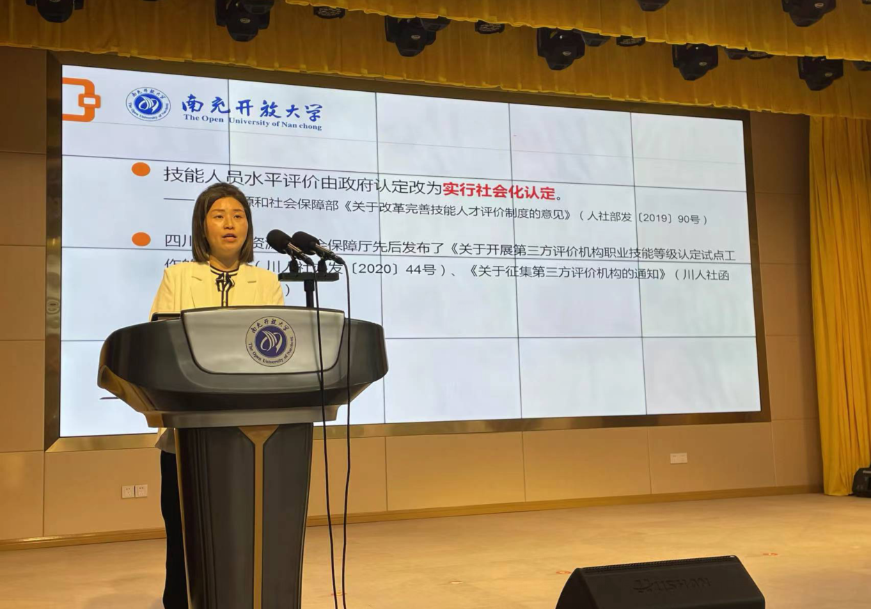 4月9日,我校培训处承担的四川省2022年“国培计划”市级农村学前骨干教师(幼儿园)培训项目团建活动在学校二楼多功能会议厅举行。南充开放大学社区教育处负责人黄羽对职业技能等级认定工作进行了针对性的宣讲,并组织学员观看了职业技能等级认定宣传片,进一步扩大了该项工作的社会知晓面。