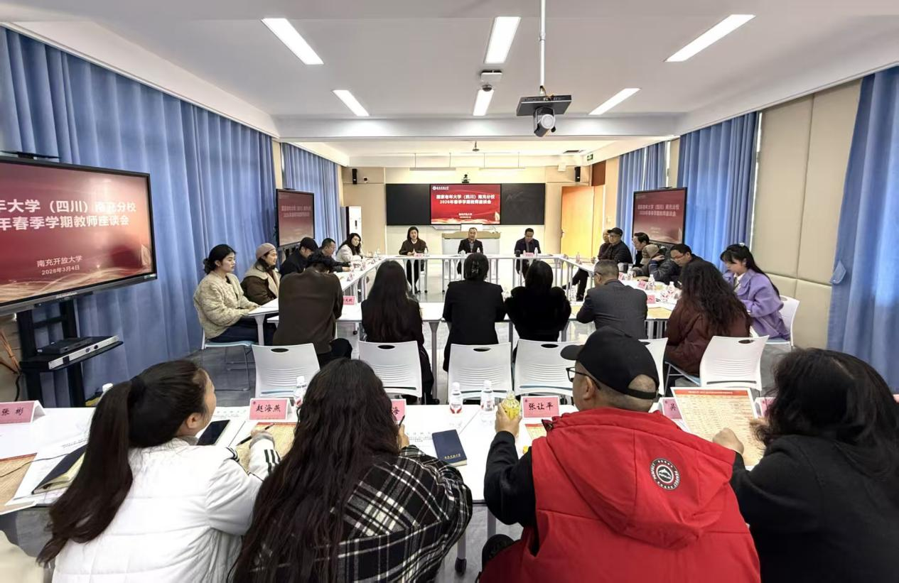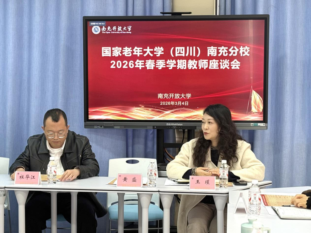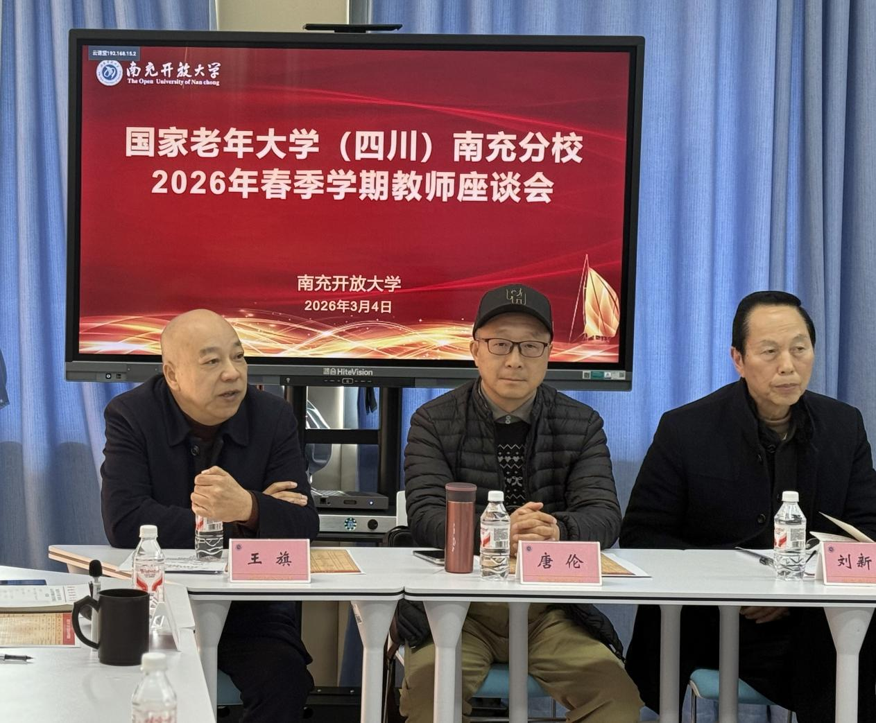 3月4日下午,国家老年大学(四川)南充分校召开2026年春季学期教师座谈会,全面总结过往教学工作,布置新学期重点任务,凝聚育人合力,推动老年教育高质量发展。会议由学校党委副书记王嘉敏主持,党委副书记、校长曲阳出席会议,2026年春季学期全体授课教师及班主任参加座谈交流。